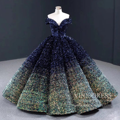 Shiny Sweet 16 Quinceañera Dress 66991 | Gradient Sequin Gown with Corset Back & Off-Shoulder