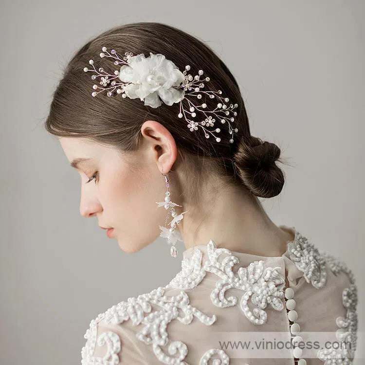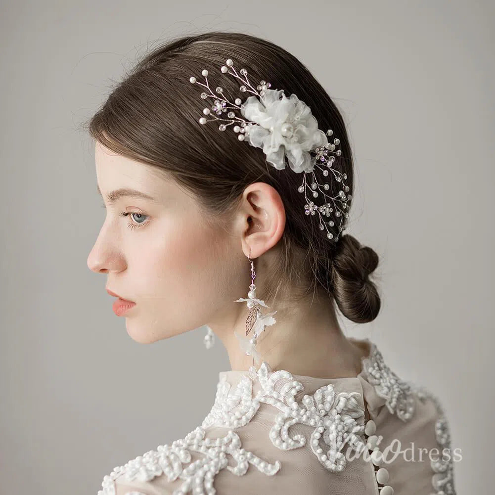 Spray Crystal Berry Bridal Comb with 3D Organza Flower ACC1107