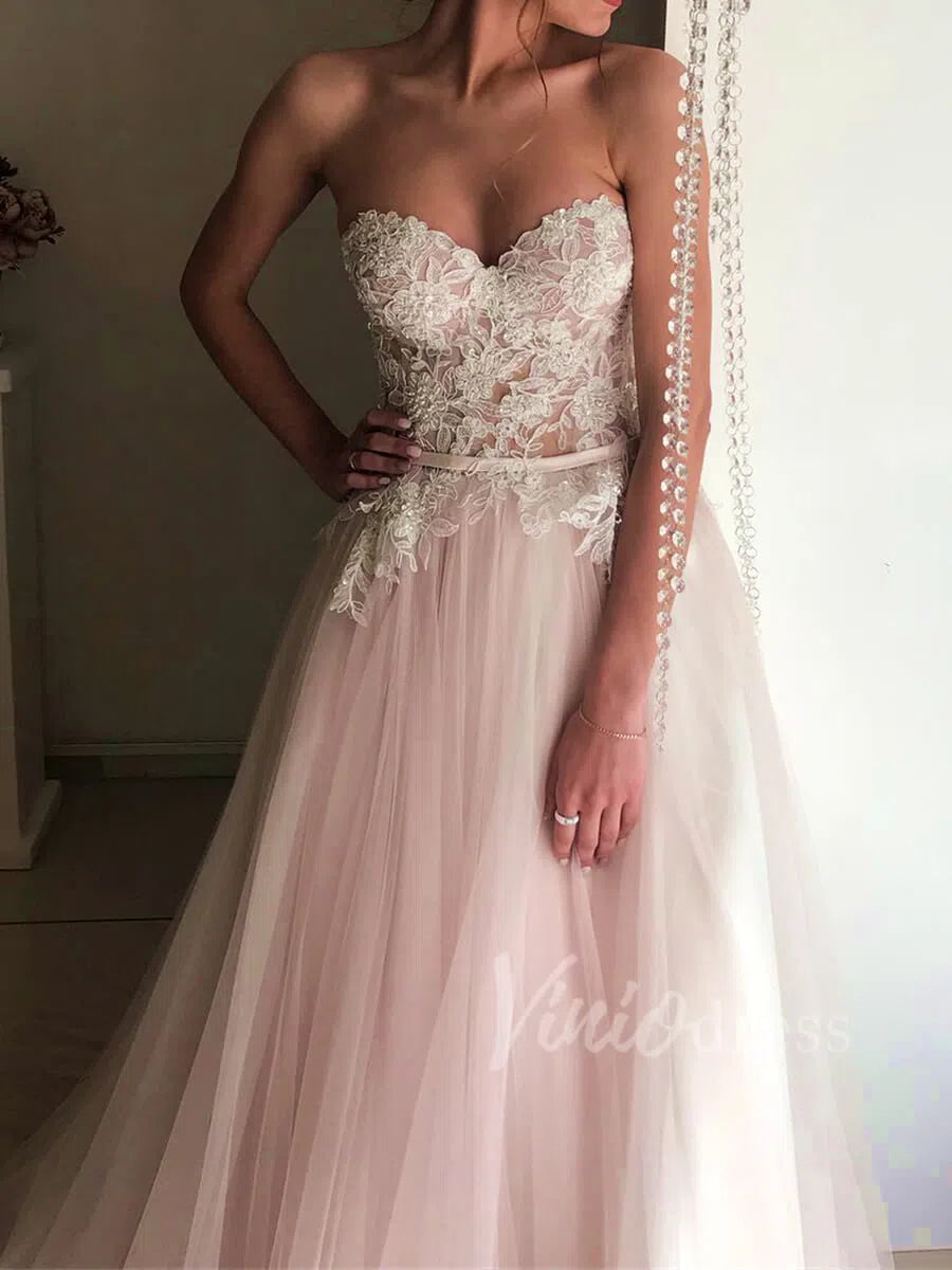 Strapless Beaded Pink Country Wedding Dresses VW1276