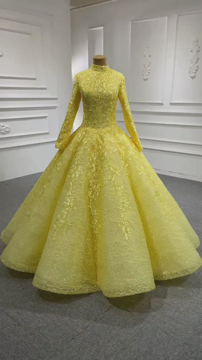 Long sleeve lace ball gown for Muslim brides.