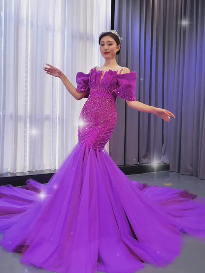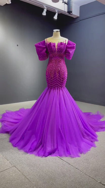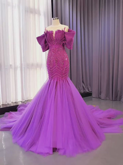 Vintage Magenta Mermaid Formal Dresses Purple Pageant Dress 67414