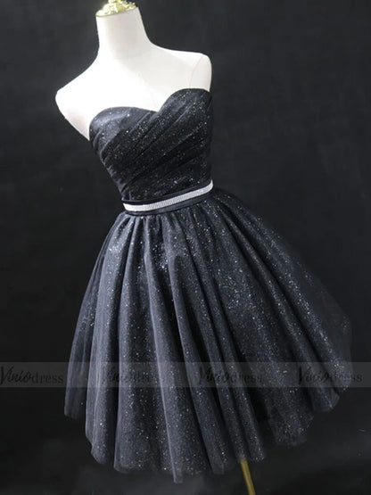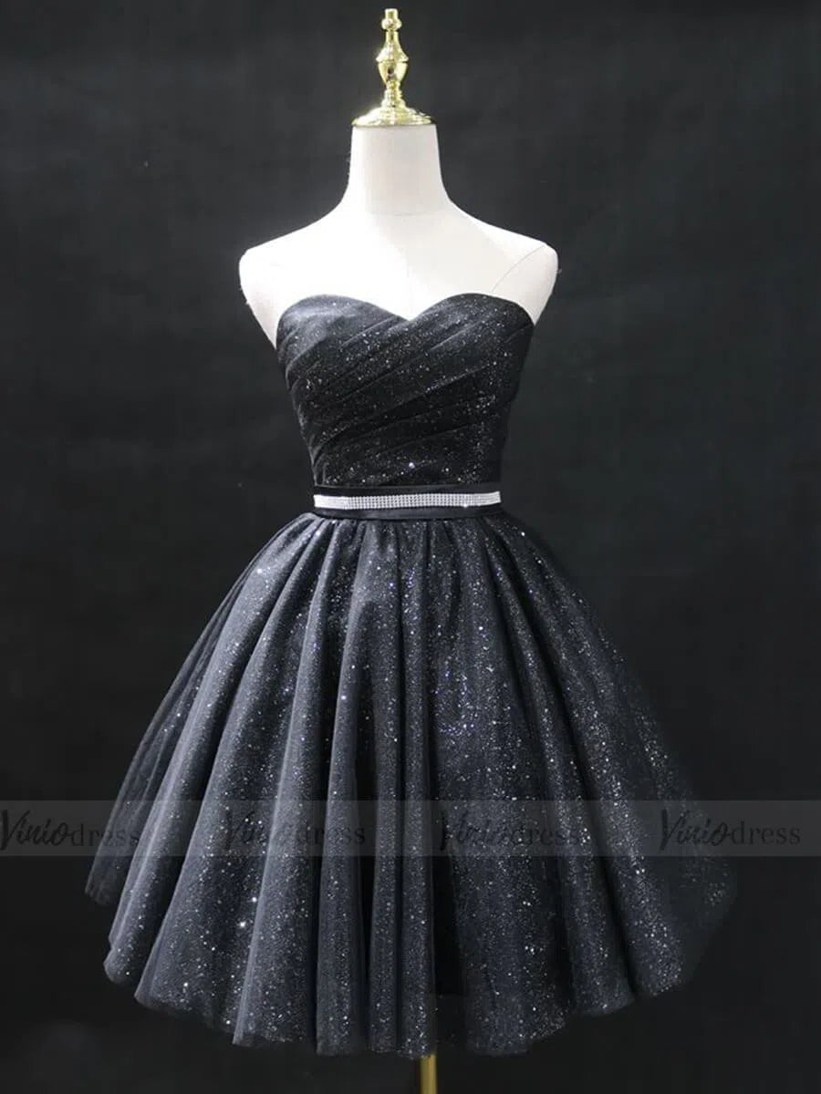 Strapless Sparkly Black Homecoming Dresses Cocktail Dress SD1220