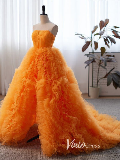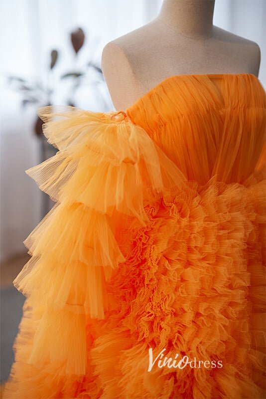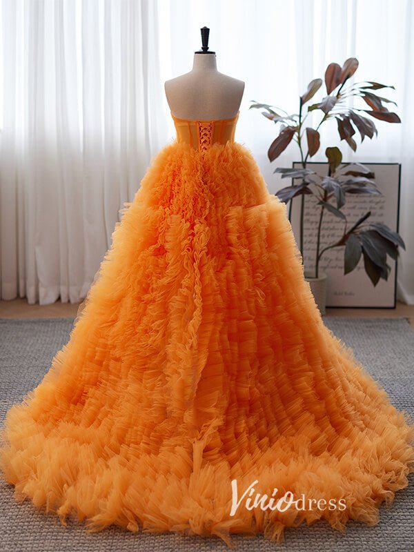 Stunning Orange Ruffle Prom Dresses Tiered Ball Gown with Slit FD3510