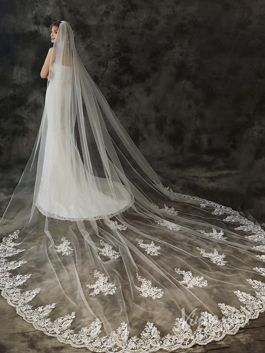 Vintage 1 Tier Lace Cathedral Veil Viniodress TS1925