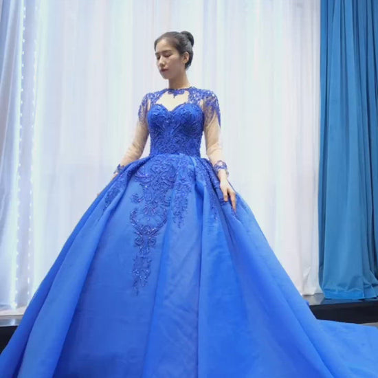 Vintage Beaded Quinceanera Dresses Long Sleeve Ball Gown Prom Dress viniodress