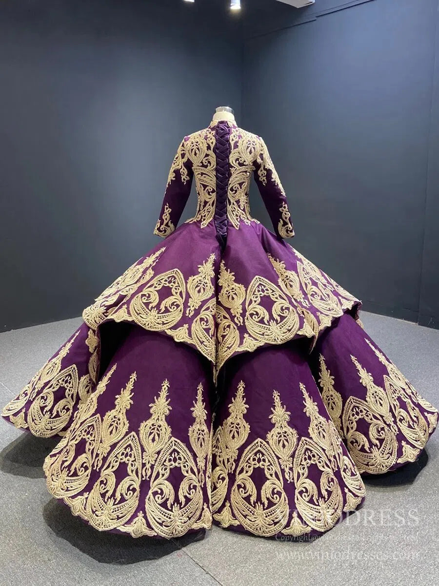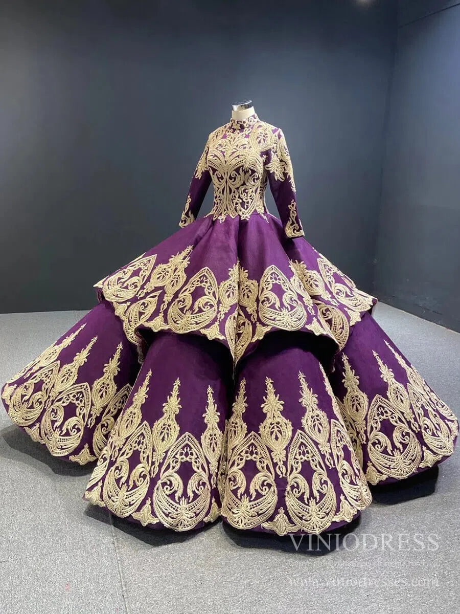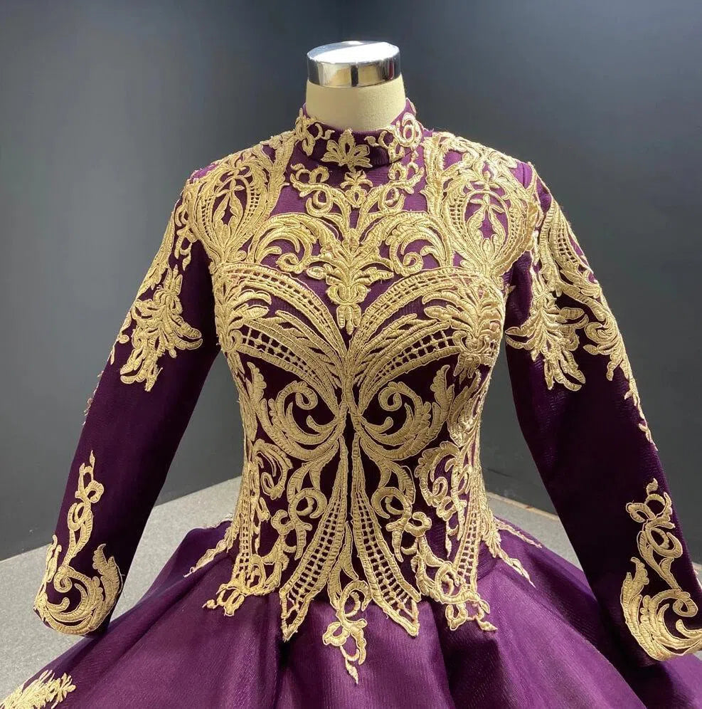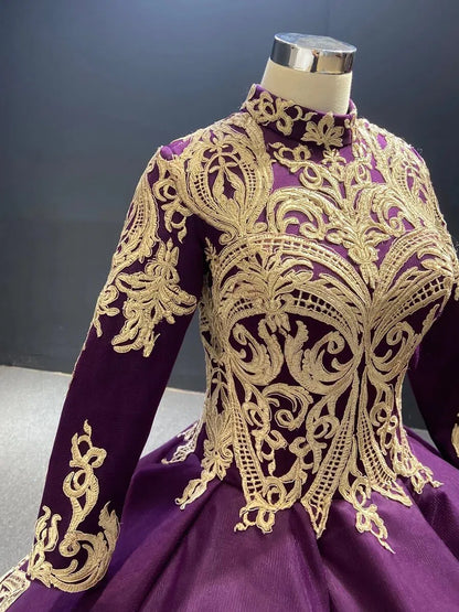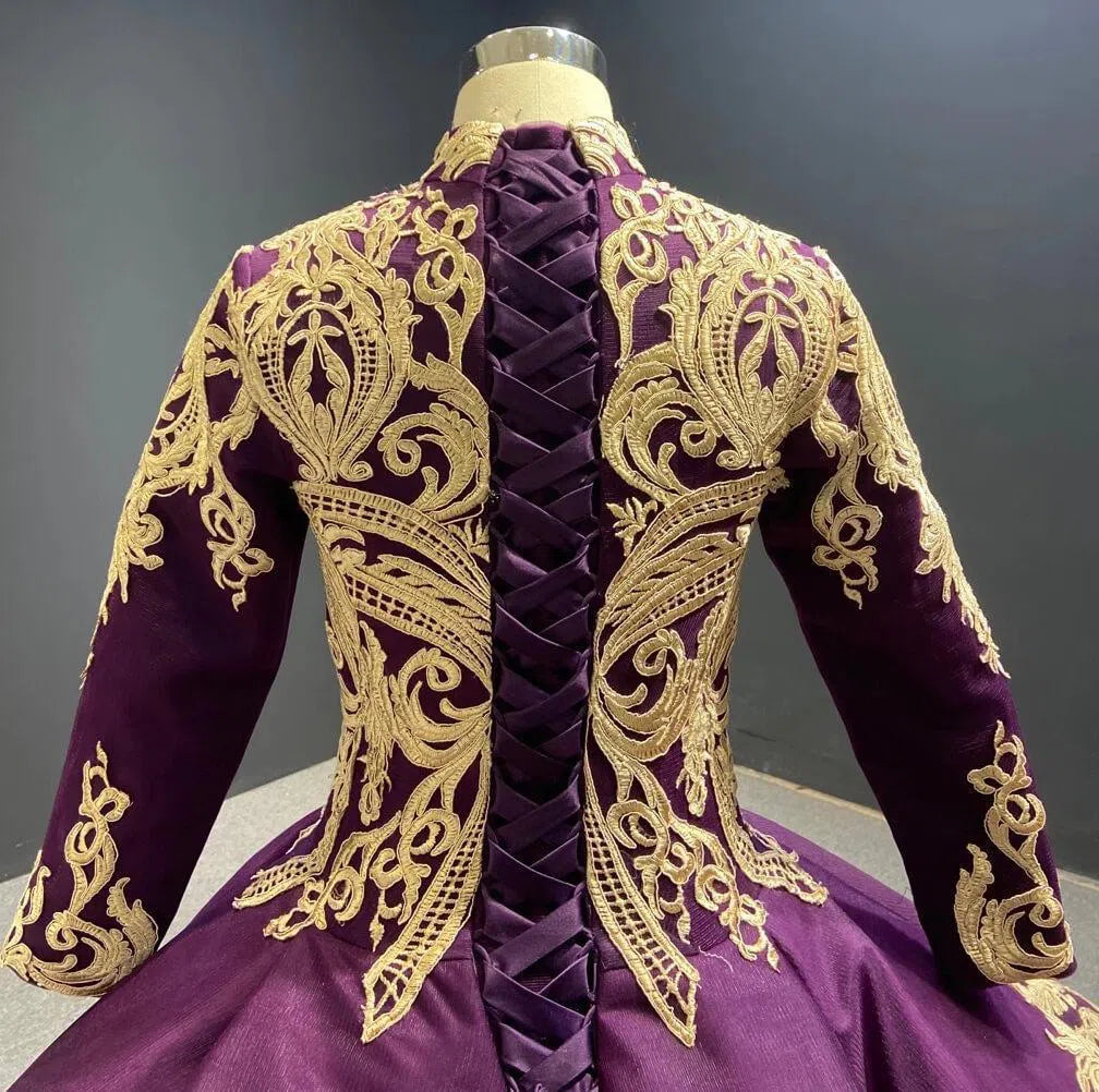 Vintage Deep Purple Muslim Wedding Dresses with Long Sleeves FD1115B viniodress