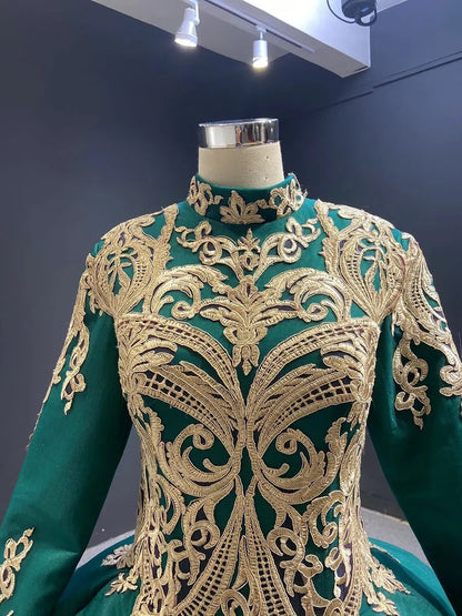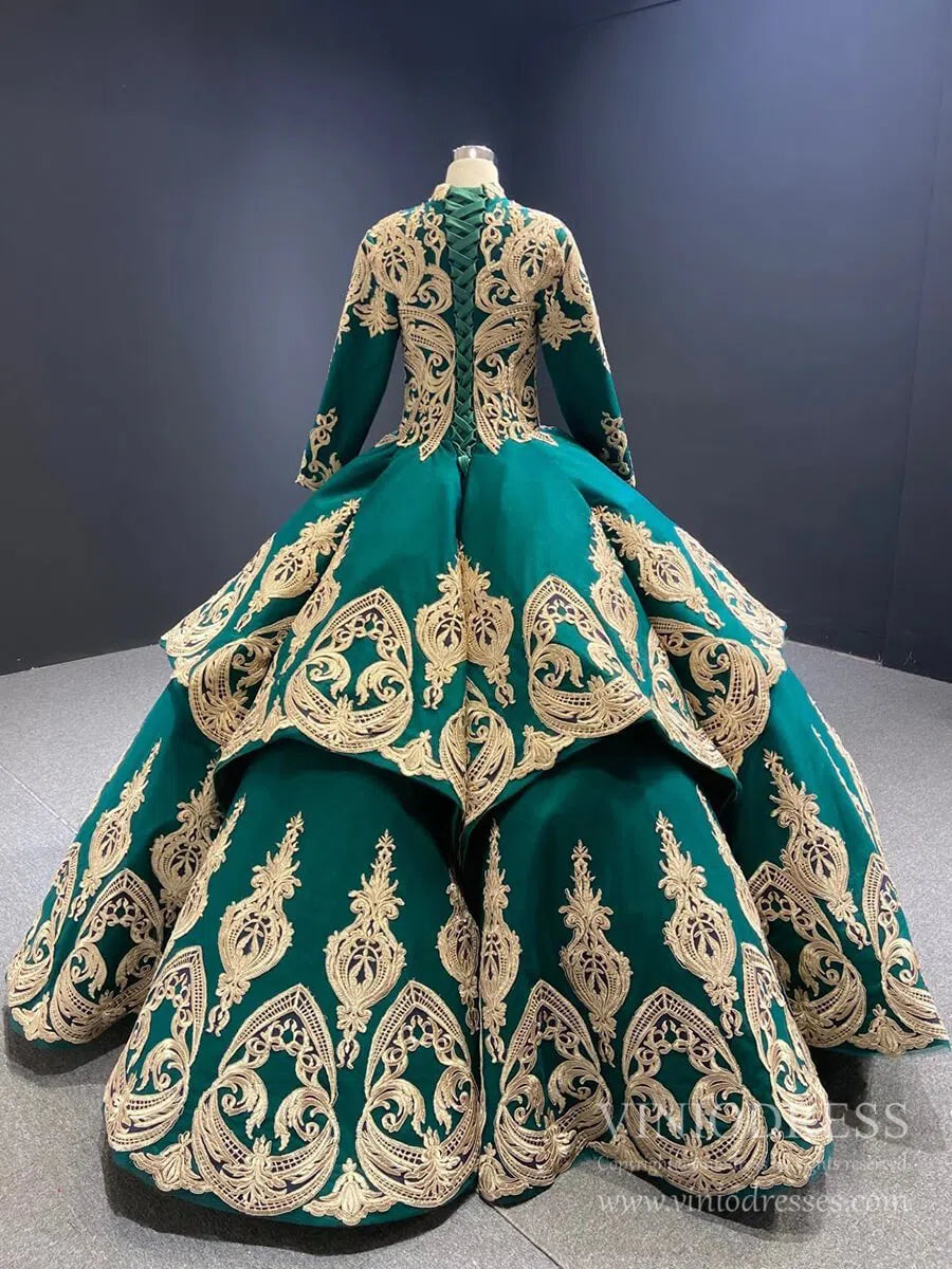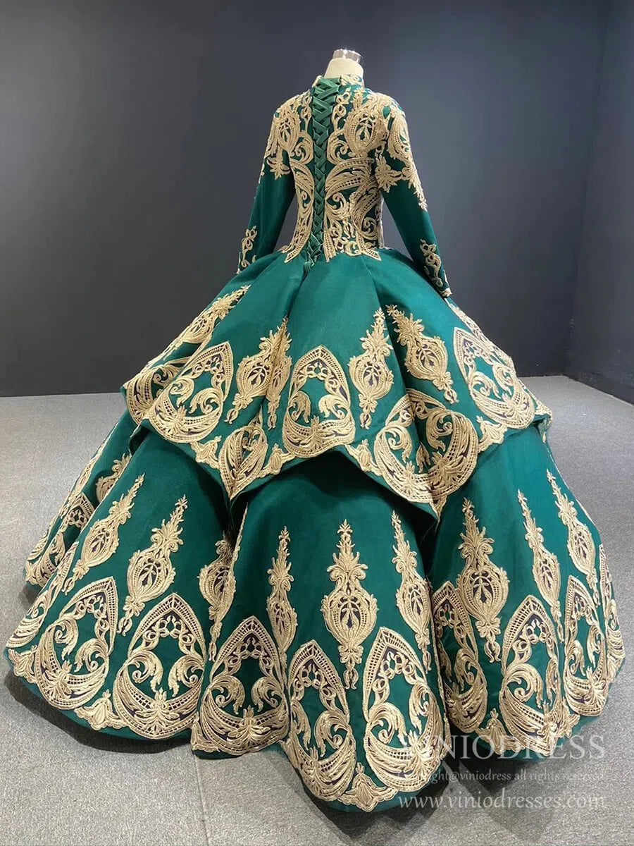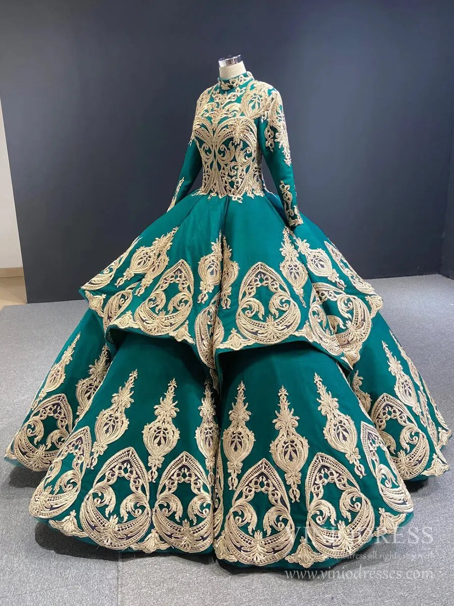 Vintage Deep Purple Muslim Wedding Dresses with Long Sleeves FD1115B viniodress