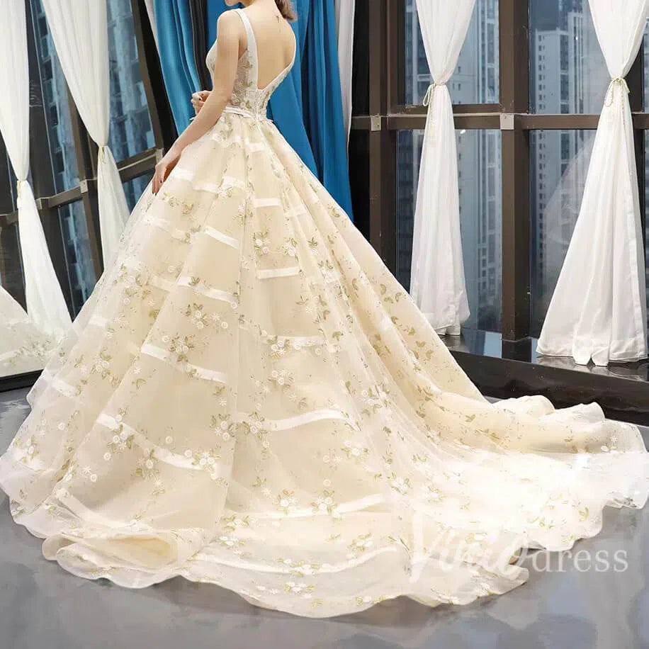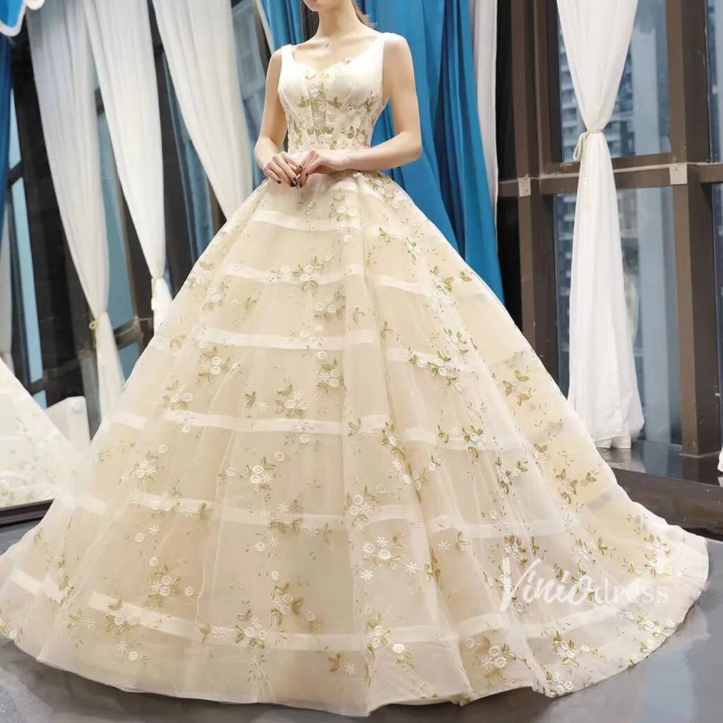 Vintage Embroidery Prom Dresses Floral Quinceanera Dresses FD1141 viniodress