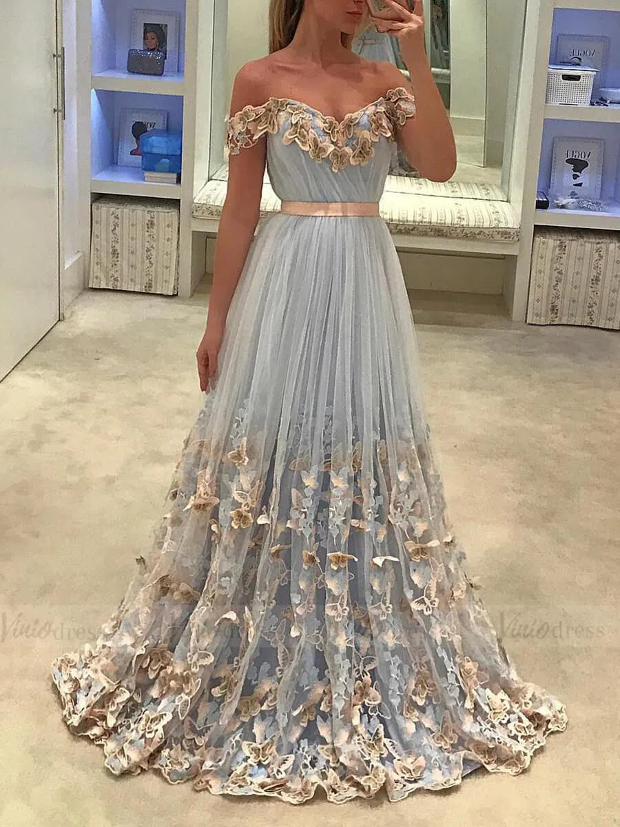 Light Blue Boho Prom Dresses with Butterfly Appliques FD1637