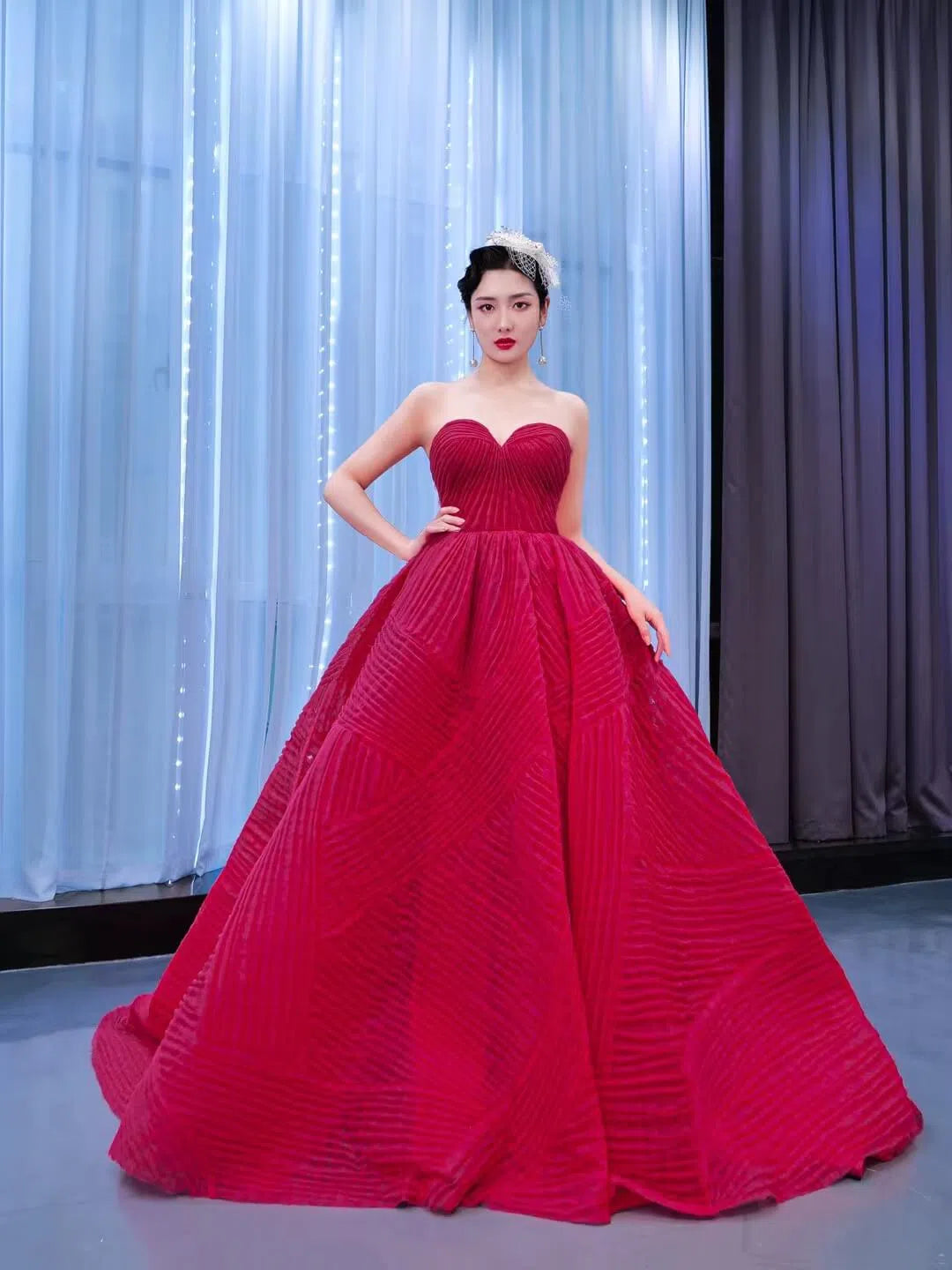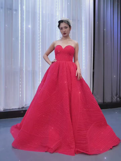 This princess dress features handmade pleated design and a 60cm long train.