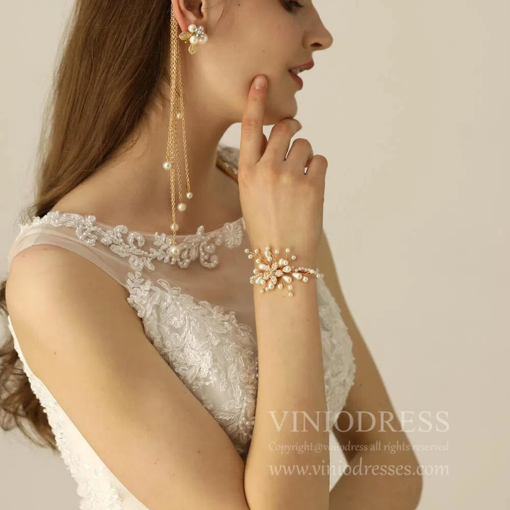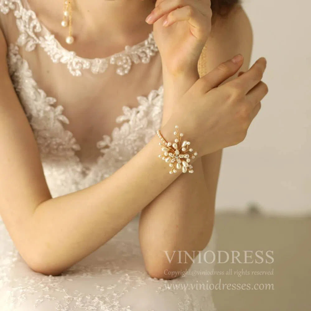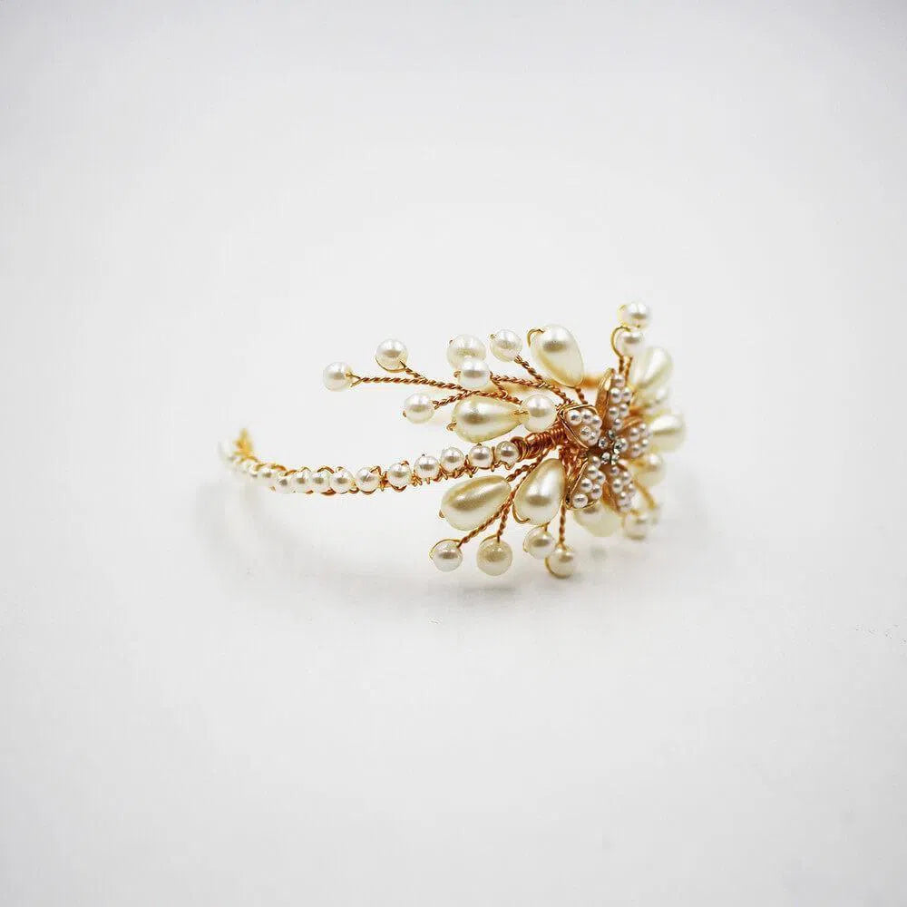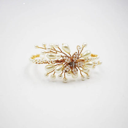 Vintage Gold Pearl Bridal Cuff Bracelet AC1094