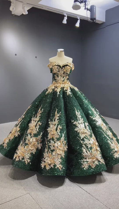 Vintage Gold Prom Dresses Red Floral Lace Quinceañera Dress 66704 viniodress