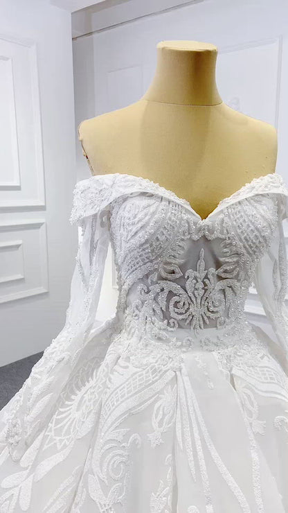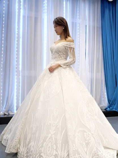 Vintage Lace Ball Gown Wedding Dresses with Sleeves 67206