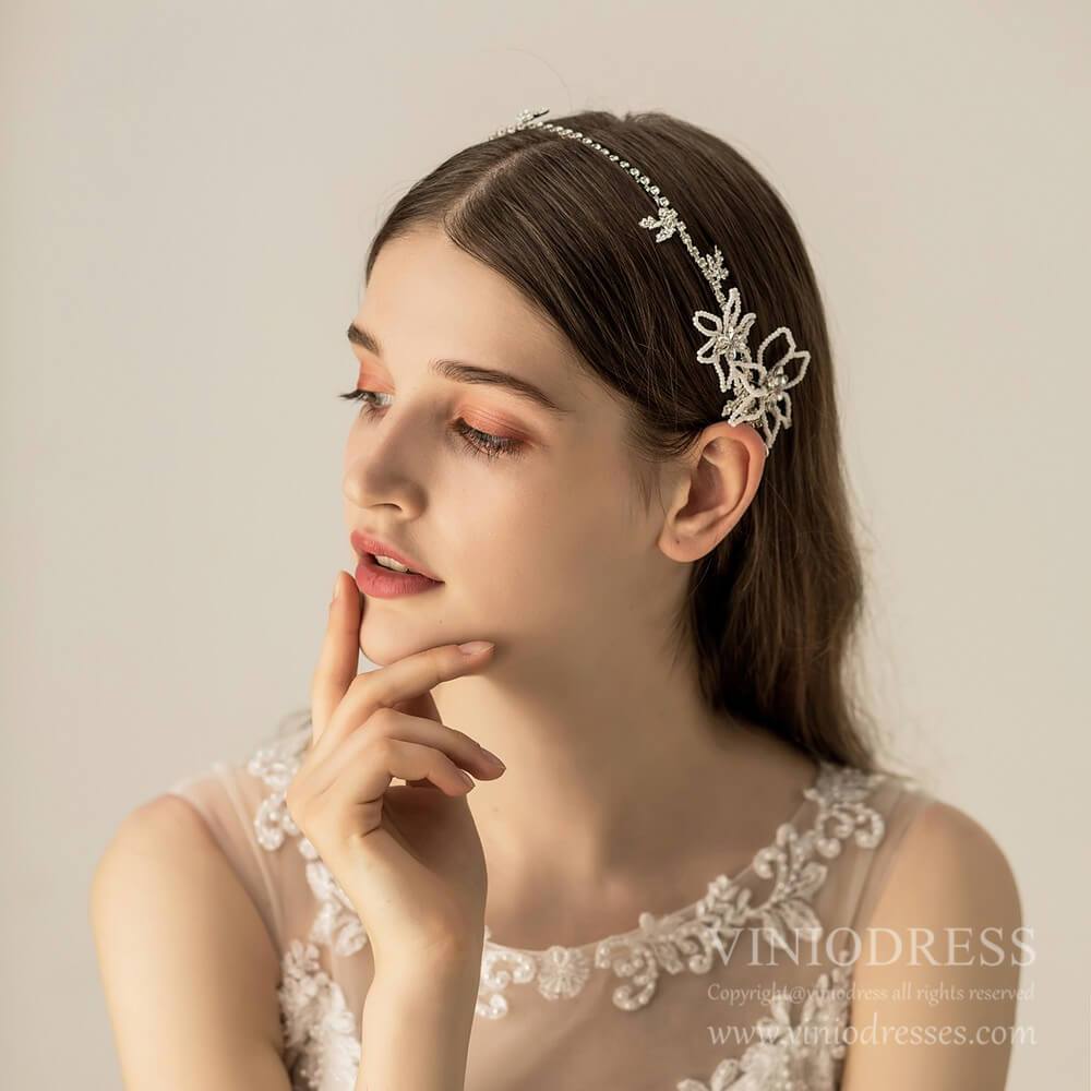 Vintage Silver Beaded Wedding Headband AC1217