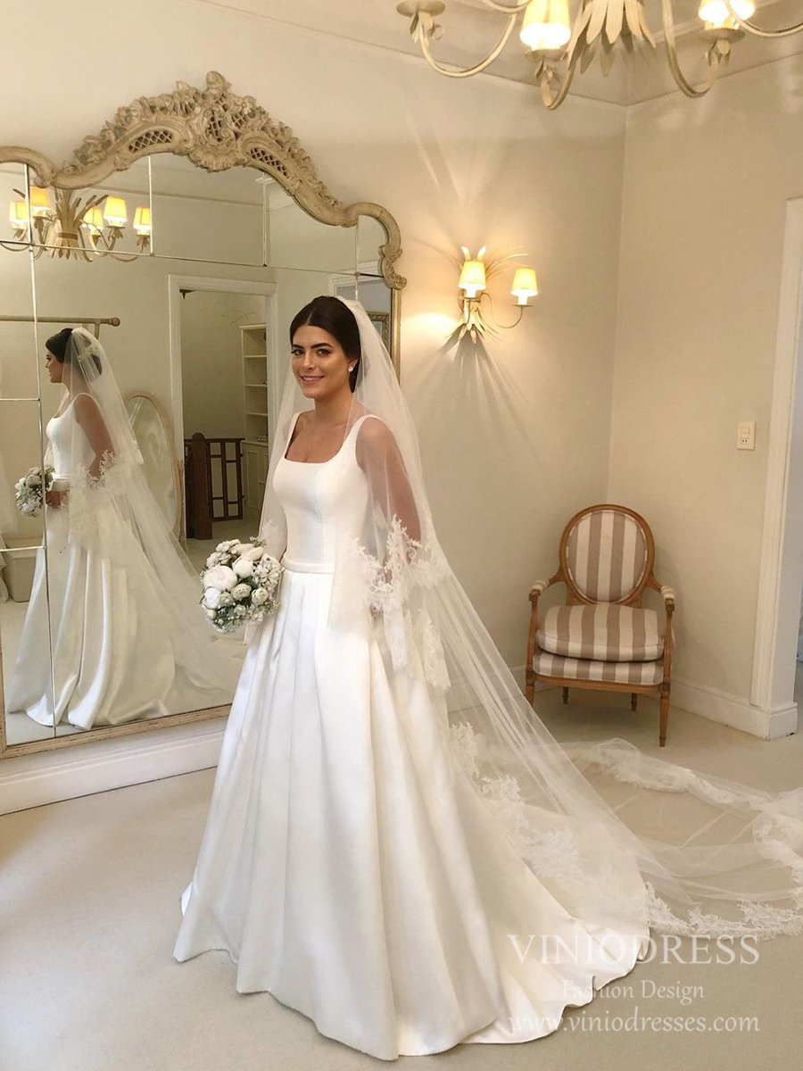 Wide Strap Square Neck Satin Wedding Dresses with Pockets VW1838